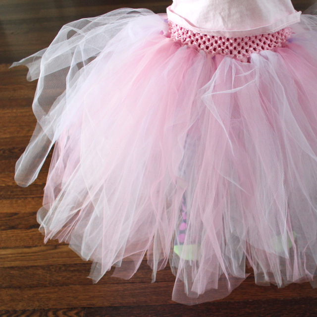 The more you separate the strips and tulle and fuss with the tulle - the fluffier your tutu will be.